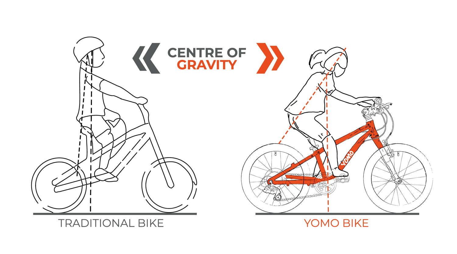 Sounds overly scientific hey, but it really isn’t - most children's bikes share the same Q-factor as adult bikes, resulting in a wide, uncomfortable leg stance. YOMO bikes offer a significantly reduced Q-factor more appropriate for children, promoting a comfy, ergonomic position that's gentle on hips and knees.